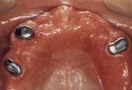 Belka międzykorzeniowa osadzona na wkładach korzeniowych w 2 zębach - stanowi zaczep dla protezy całkowitej.