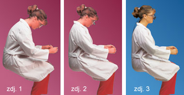 Zdjęcie 3: przedstawia najlepszą pozycję pracy, doskonała pozycja kręgosłupa zarówno w odcinku lędzwiowym jak i szyjnym, podczas stosowania ergonomicznie skonstruowanych lup zabiegowych.